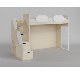 В таких кроватях спальное место располагается на втором ярусе. А вот снизу может располагаться место для творчества, рабочее место, игровая зона, шкаф, комод или полки. Для того, чтобы залезть на кровать, ребенку необходимо будет взобраться по специальной лестнице. Детская кровать-чердак полностью безопасна для малыша. Это объясняется ее устойчивостью, наличием бортика безопасности и его высотой, надежностью крепежа, удобной лестницей и высотой пространства между двумя ярусами.