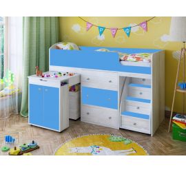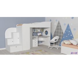 Второй вид кроватей-чердаков рассчитан на возраст детей от пяти лет. Спальное место в таком случае располагается на высоте 1,3-1,6 метра. На первом ярусе чаще всего есть шкаф и рабочая зона в формате письменного стола и книжных полок.
