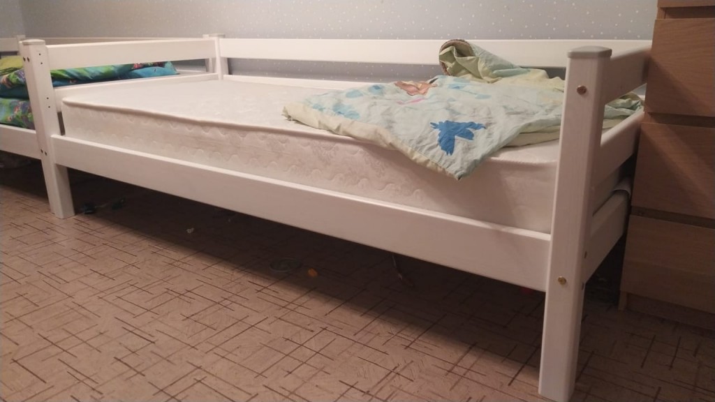 Кровать Соня Вариант 2 с задней защитой Белый полупрозрачный