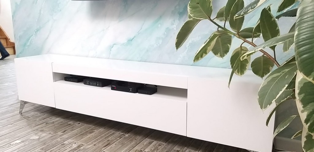 - В центре за декоративной планкой открытая ниша для техники. Размер ниши 1100х177 мм. Высота планки 70 мм. Вертикальная перегородка установлена в центре;