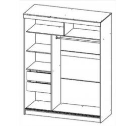 Каркас вмещает 2 выдвижных ящика, штангу для одежды и много полок. Лакобель на створках подчеркнет ваш изысканный вкус при выборе мебели.