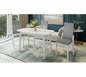 3. Выбирая столы и стулья для кухни, нельзя обойти вниманием и габариты конструкции. Для удобства взрослому человеку нужно пространство шириной 60-70 см. Большие обеденные столы создают в пространстве ощущение безграничности, объема. Стандартные параметры, которыми обладает обеденный стол: 1200 мм длина, 750 мм высота, 750-800 мм ширина. Такой стол для кухни без проблем вместит 4 человек.