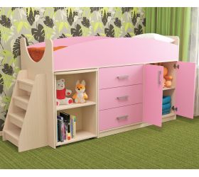[name] => Кровать двухъярусная Башмачок 1.9 Дуб молочный/Розовый