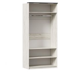 - За распашной глухой сборной дверью 6 полок и штанга для одежды. Высота между полками 300 мм;