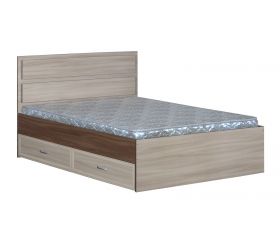 Кровать двойная с ящиками 1400-2 без матраса (прямые спинки) Ясень Шимо темный/Ясень Шимо светлый